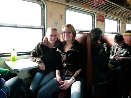 Am Samstag haben wir dann einen Ausflug nach Yantai unternommen, um auch mal aus Qingdao rauszukommen. Unser Zug ging um 6 Uhr morgens, das hieß um 4 Uhr aufstehen und um 5 ein Taxi finden. Und in China findet man auch morgens um 5 eins. Die Zugfahrt selber war auch ganz ok, nur dass es im Zug eiskalt war. Trotz Jacke und Schal haben wir gefroren!! Nächstes Mal werden wir uns besser vorbereiten…